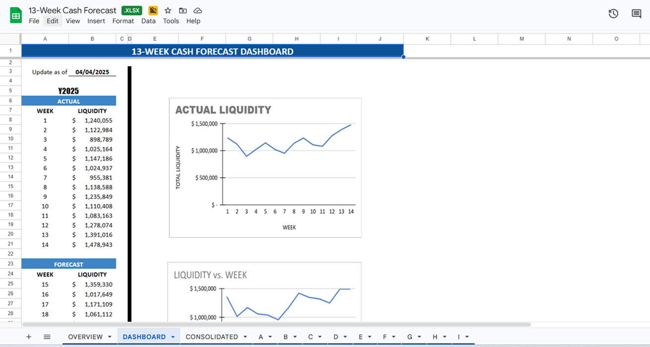 Description: A short-term, weekly cash visibility tool that predicts inflows, outflows, and liquidity risk over the next 90 days.